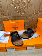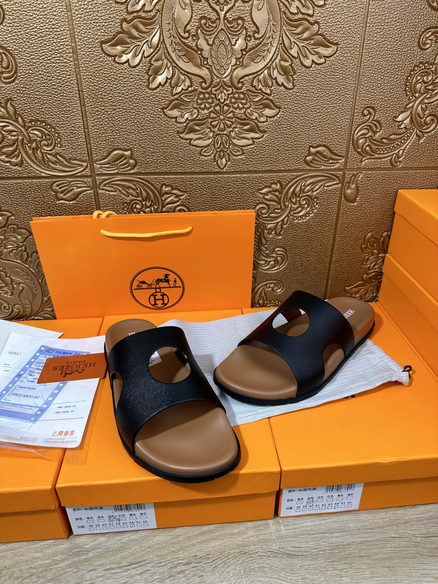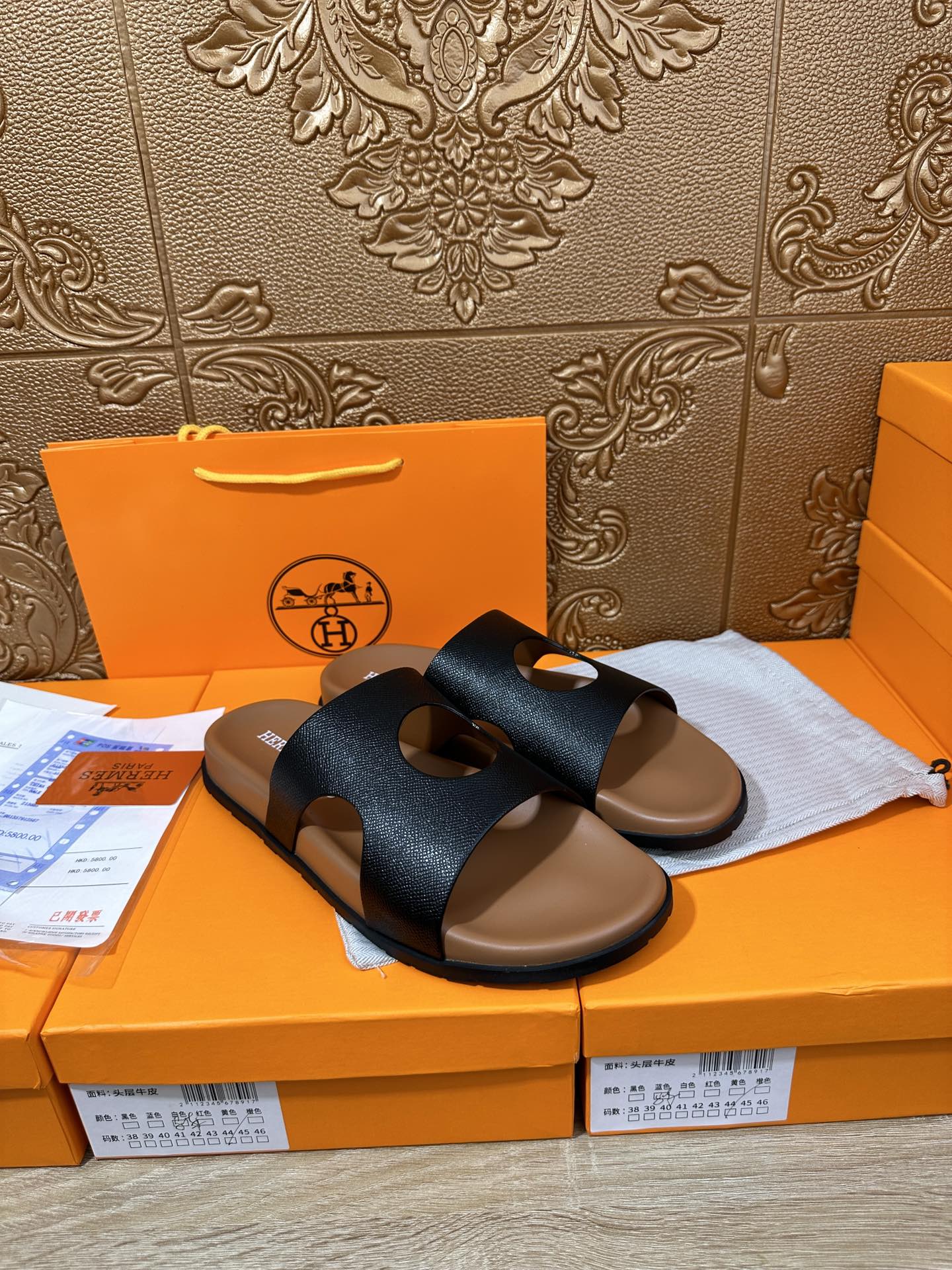 HM CIRCLE CUT SANDAL BLACK AND CARAMEL CALFSKIN