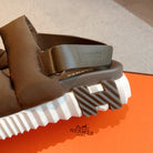 HM ELECTRIC SANDAL BROWN FABRIC AND CALFSKIN