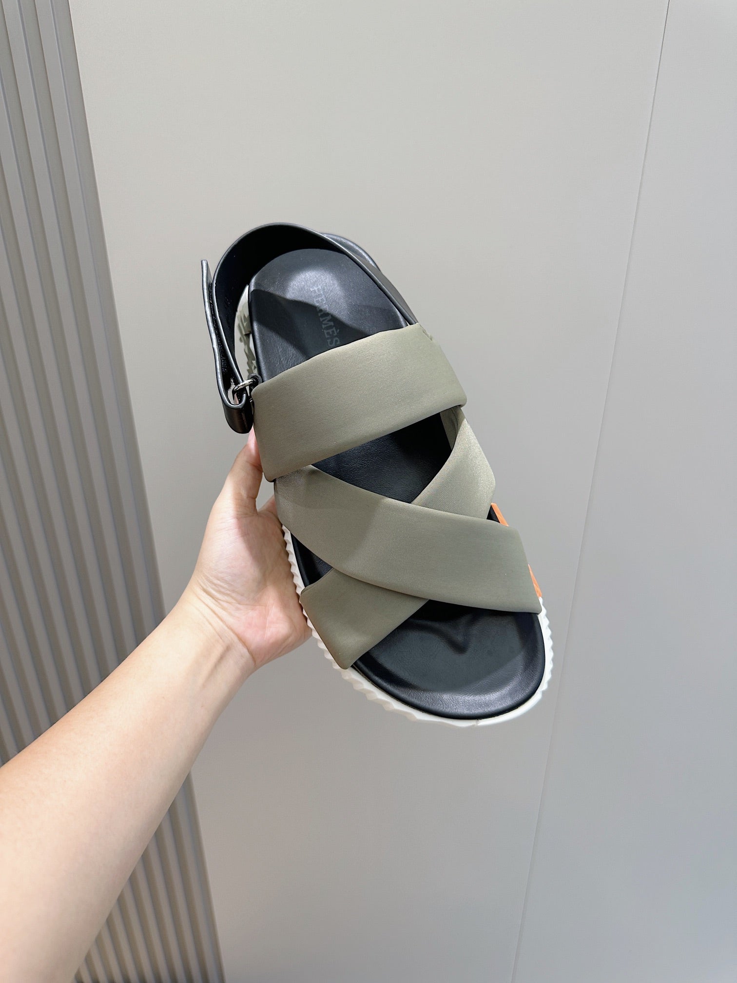 HM ELECTRIC SANDAL MOSS FABRIC AND CALFSKIN