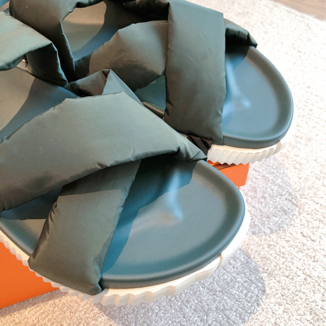 HM ELECTRIC SANDAL SPRUCE FABRIC AND CALFSKIN