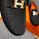 HM H-BUCKLE LOAFER BLACK EMBOSSED LAMBSKIN