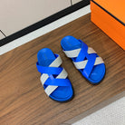 HM Kazimir Sandal Blue Gray Farbic Calfskin 293982