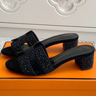 HM Oasis Sandal 50mm Black Suede Goatskin 291392