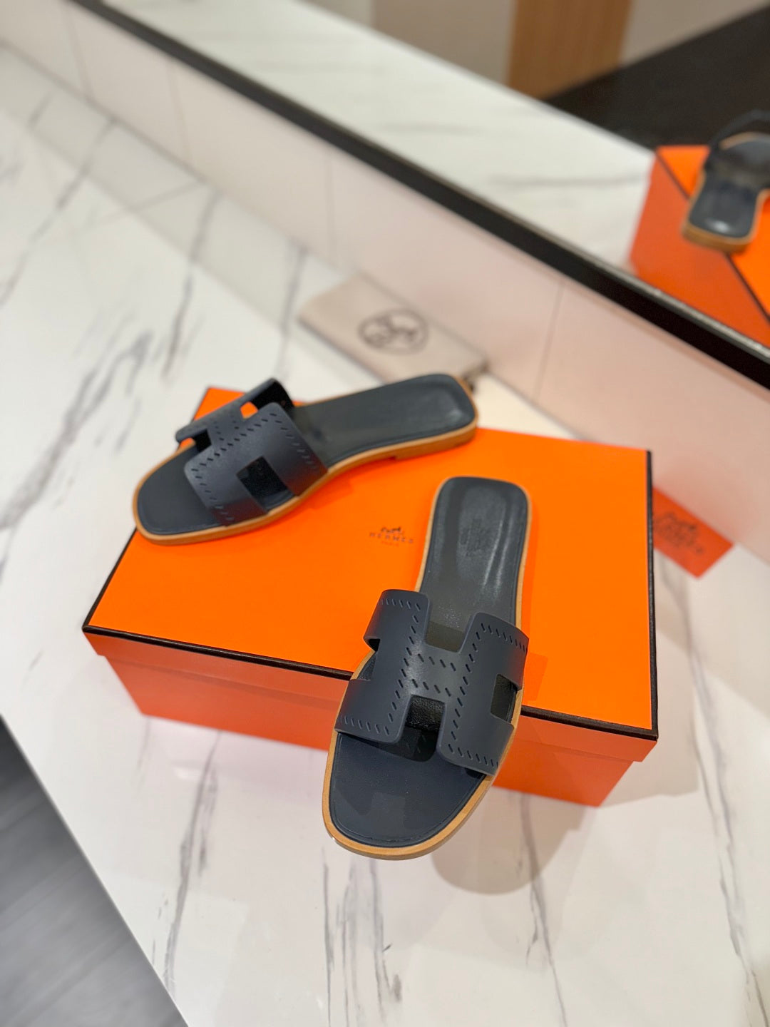 HM Oran Sandal Black Blue Perforate Cowhide 294870