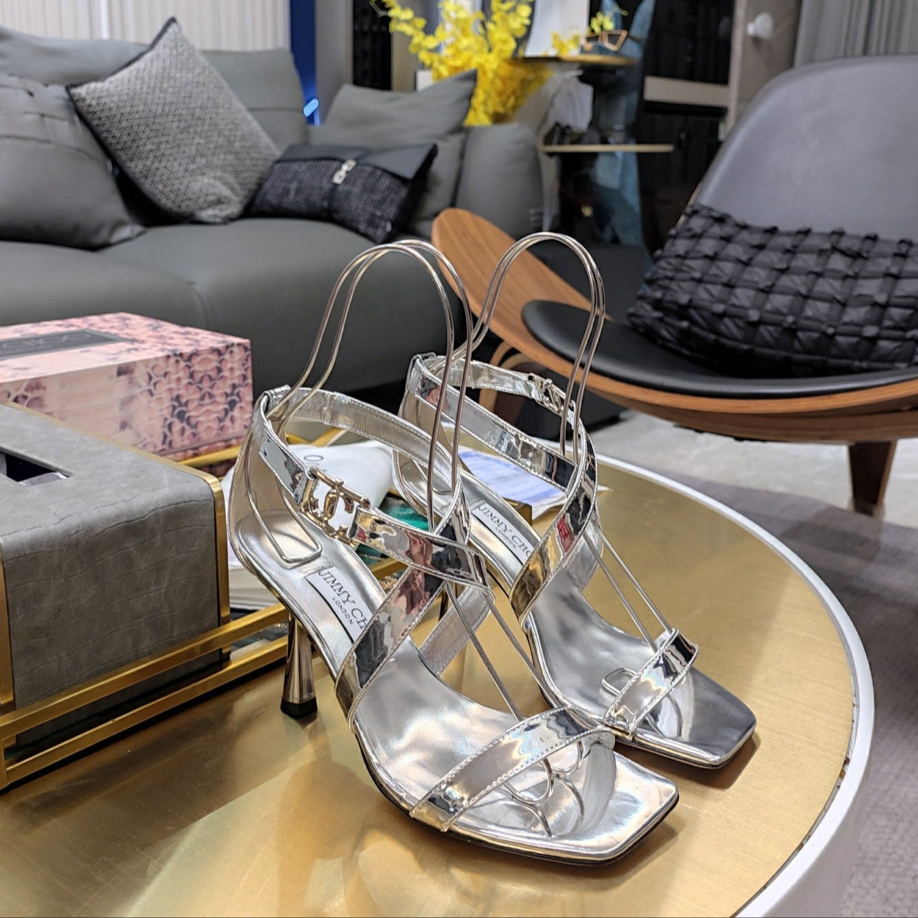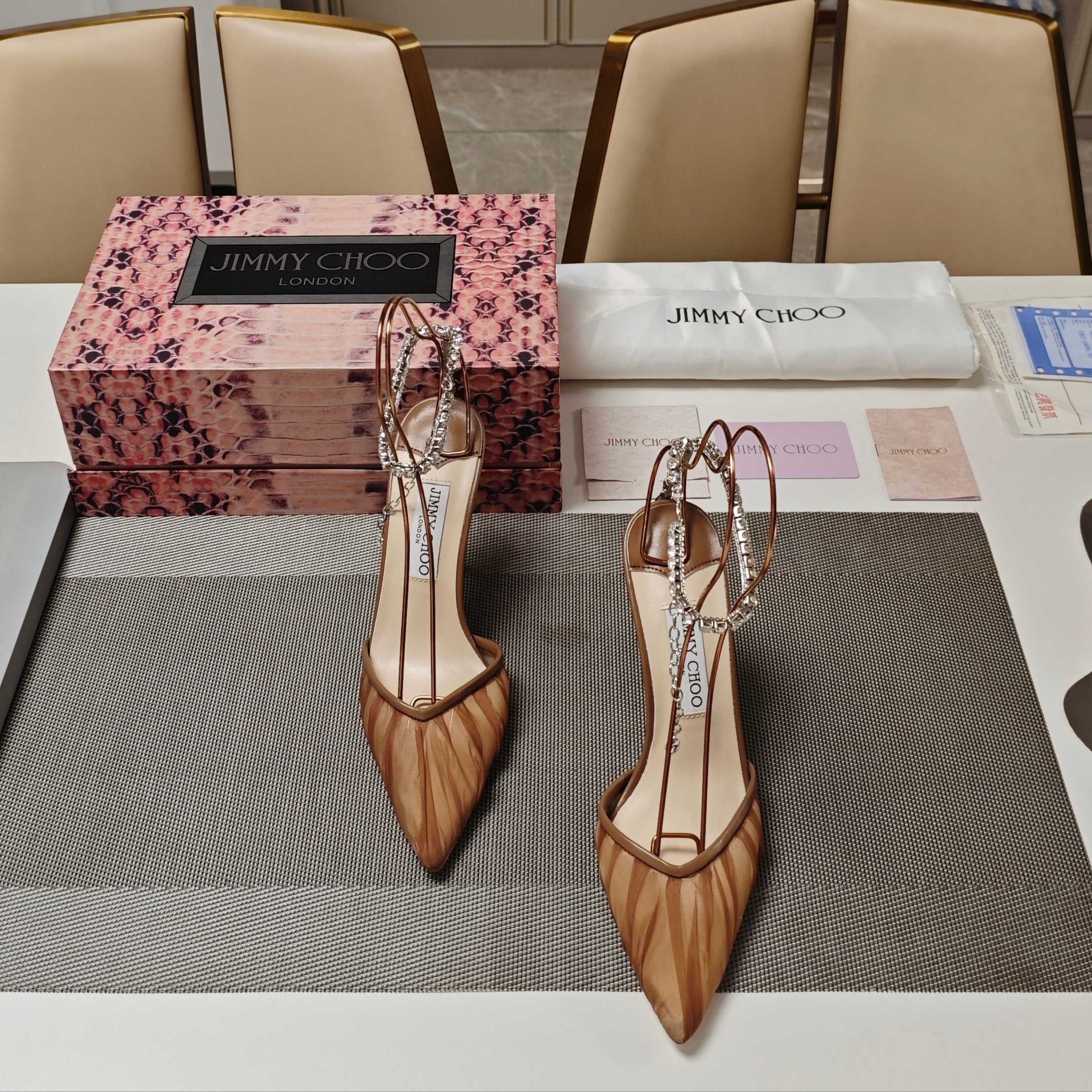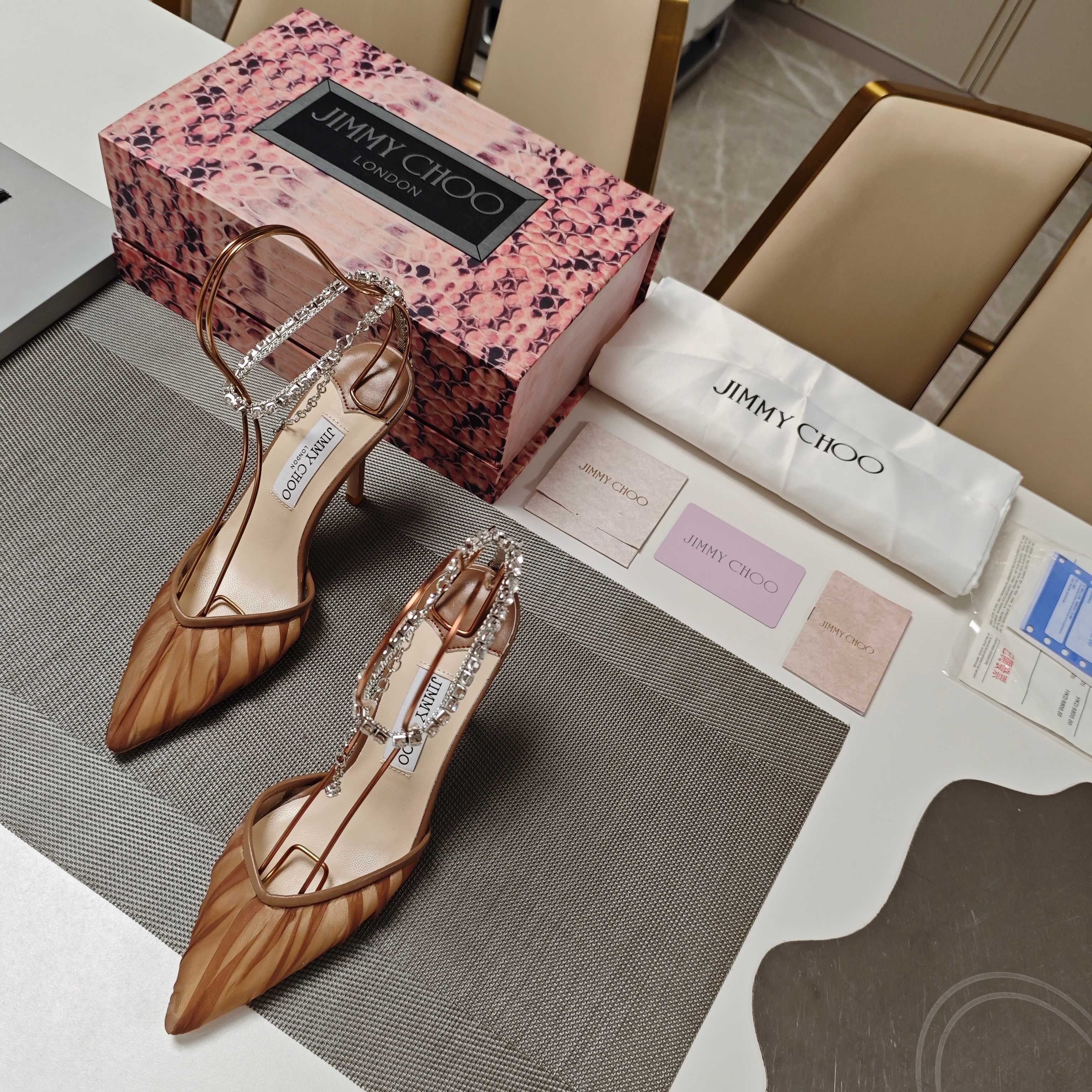 - Material: Suede, Crystal/Lambskin