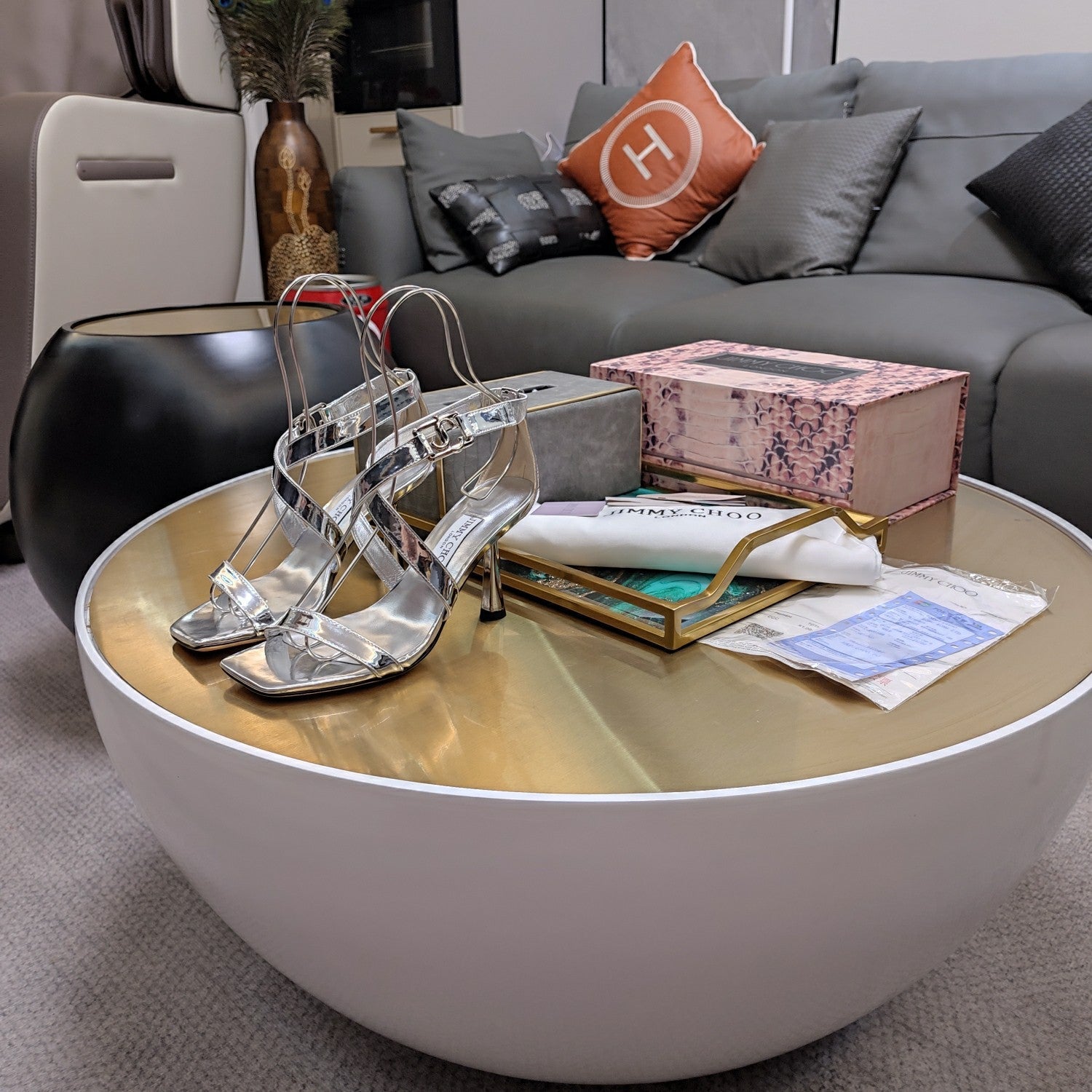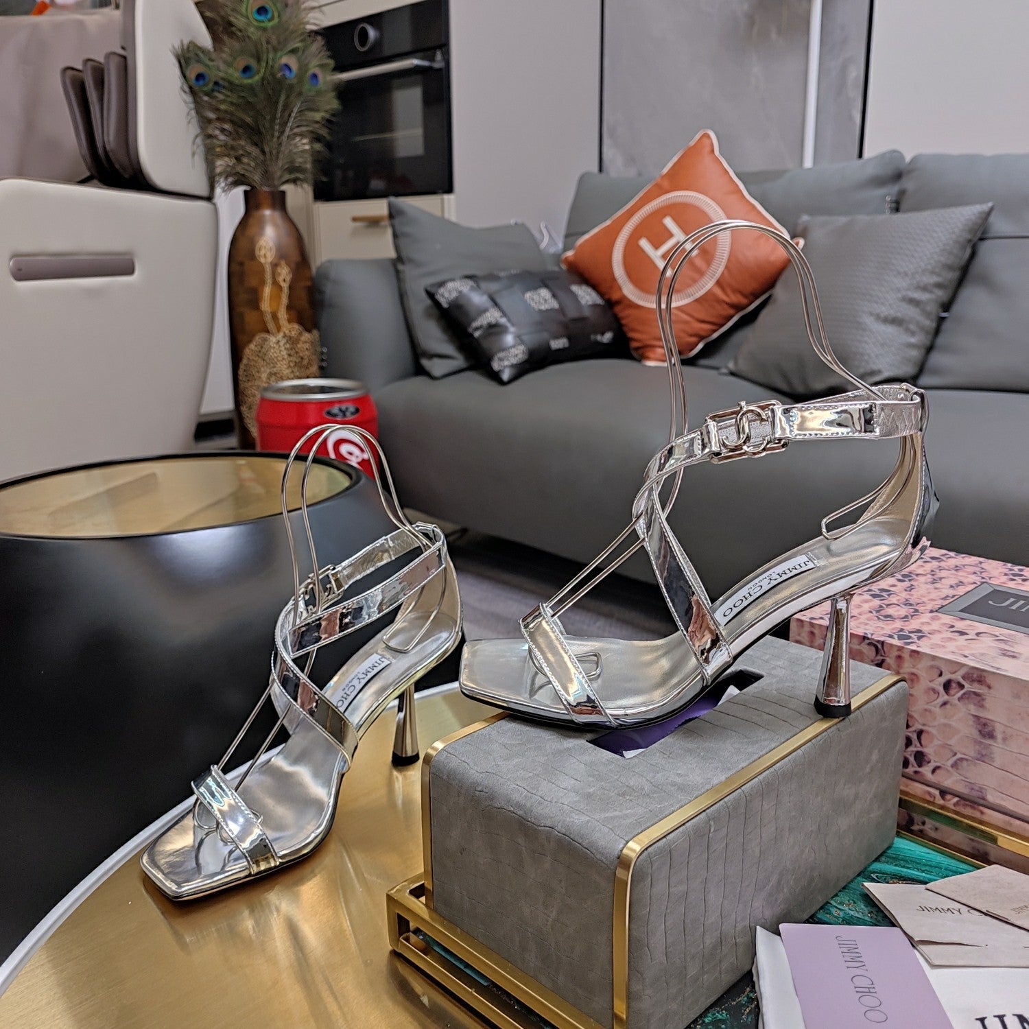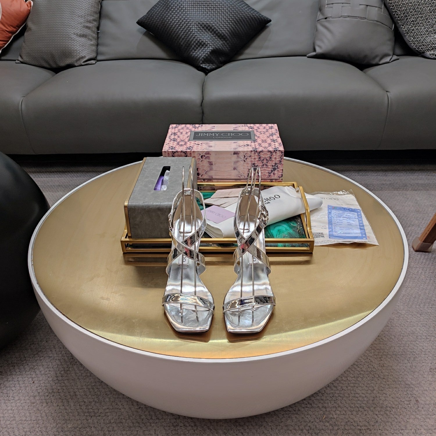 - Material: Suede, Crystal/Lambskin