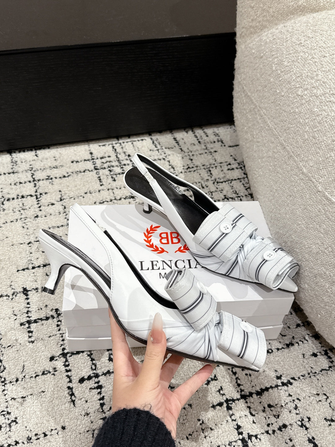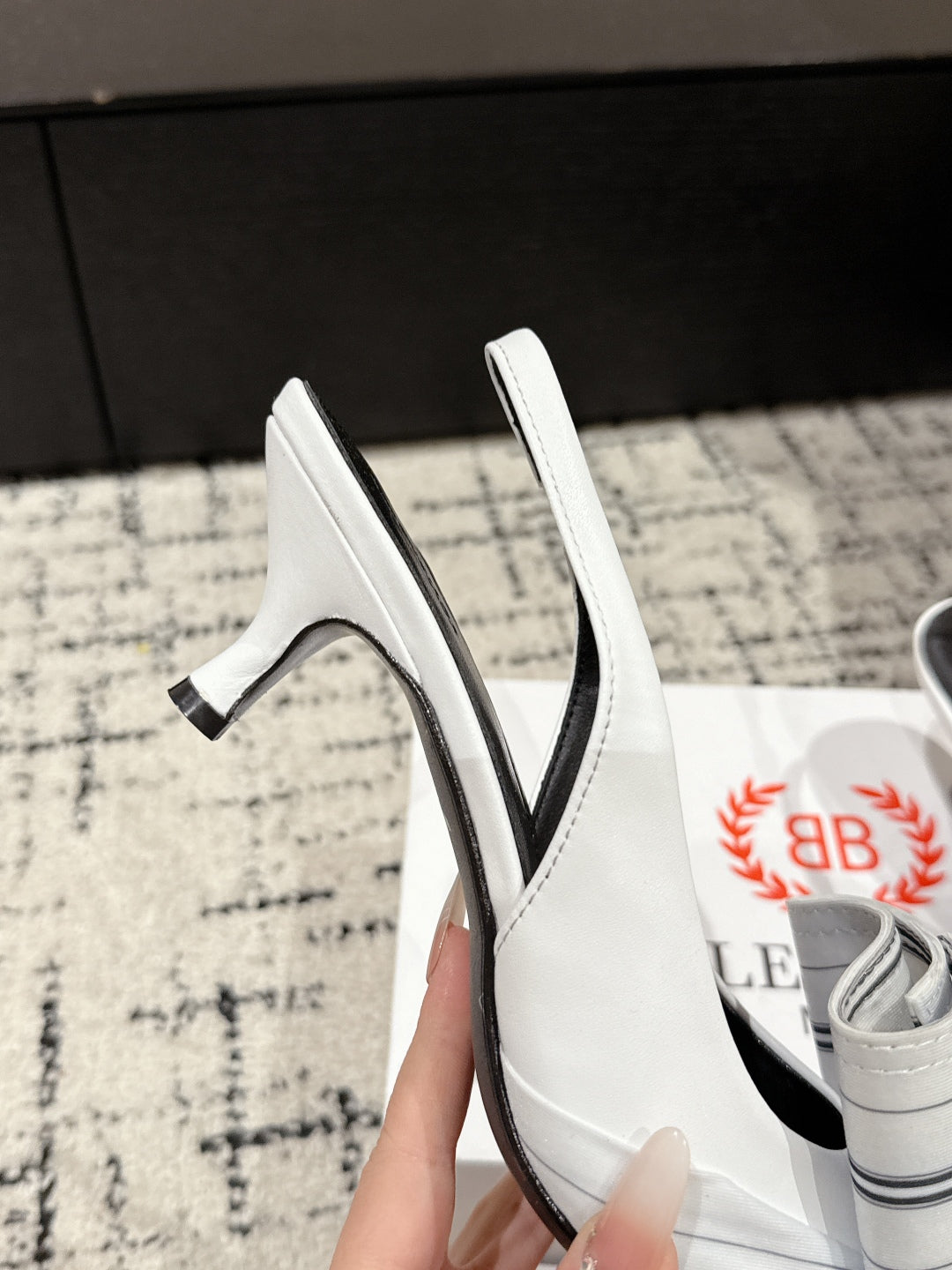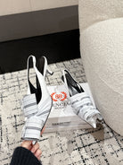 KNIFE CHEMISE 45MM SLINGBACK IN WHITE MIX BLACK COTTON AND CALFSKIN