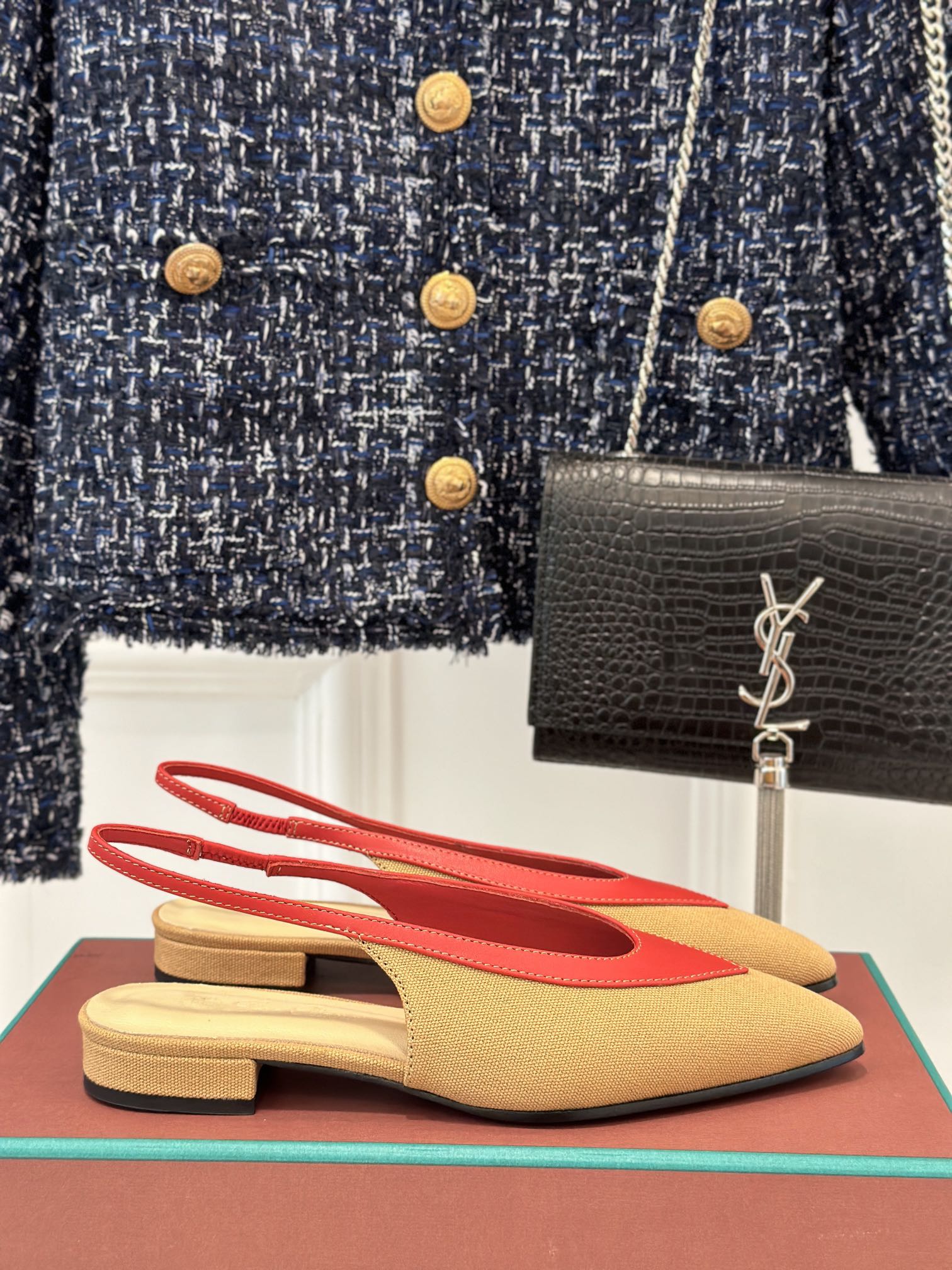 LP Rebecca Slingbacks In Mustard Brown Mix Red Cotton Fabric And Lambskin 989414