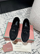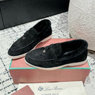 LP Summer Charms Walk Loafers In Black Suede With Rabbit Fur Lining 985641