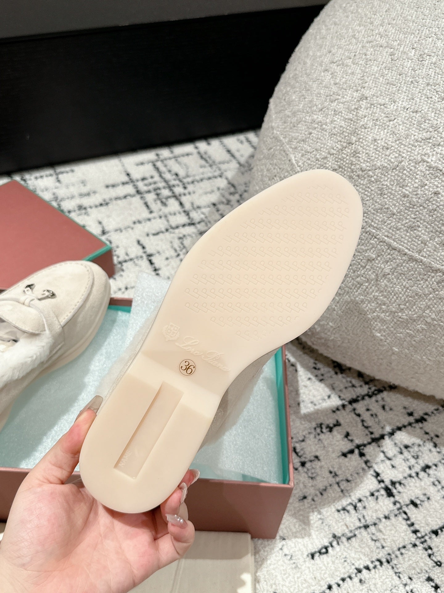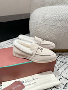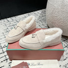 LP Summer Charms Walk Loafers In White Suede With Rabbit Fur Lining 985649