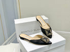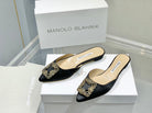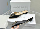 Manolo Buckle Flast Mules Black Silk 327515