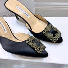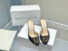 Manolo Buckle Mules 7cm Black Silk 208022