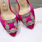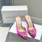 Manolo Buckle Mules 7cm Dark Pink Silk 208015