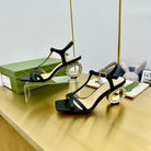 MEDIUM-HEEL SANDAL IN BLACK CALFSKIN WITH RHINSTONES