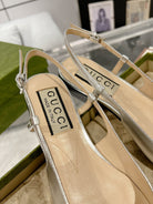 METALIC SLINGBACK FLATS IN SILVER CALFSKIN