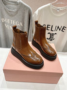 Miu Ankle Boots Caramel Brown Polished Calfskin