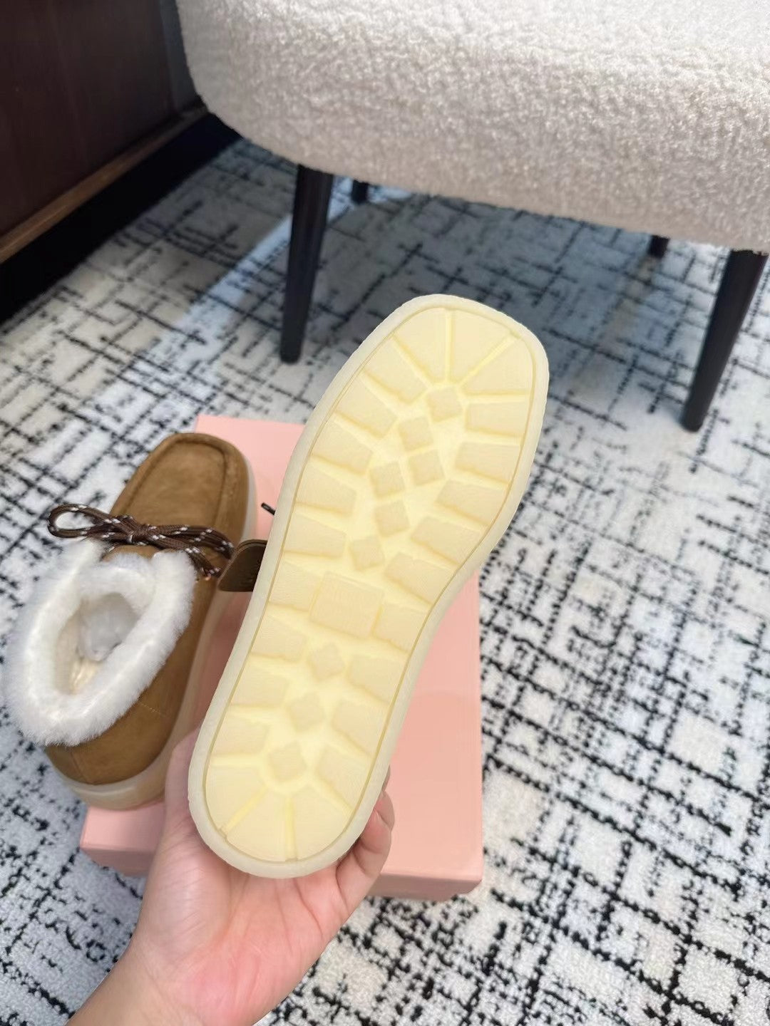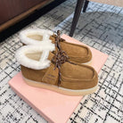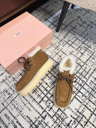 Miu Ankle Boots Cinnamon Brown Fleece Lining Cow Suede