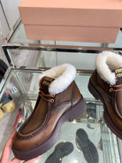 Miu Ankle Boots Earth Brown Open-Hemmed Cowhide