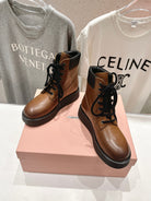 Miu Lace-Up Boots Vintage Brown Waxed Calfskin