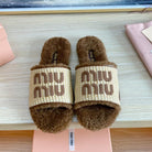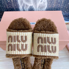 Miu Slipper Beige And Brown Woven Raffia