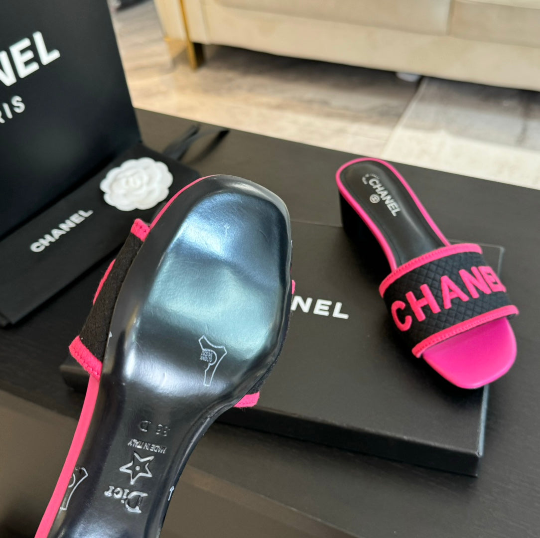 mule sandal 45 black pink fabric embroidery