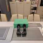 OPEN-TOE CURVED HIGH HEEL SANDALS IN BLACK SMOOTH CALFSKIN