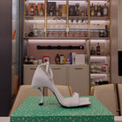 OPEN-TOE CURVED HIGH HEEL SANDALS IN WHITE SMOOTH CALFSKIN