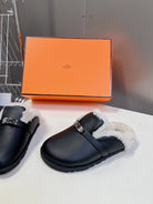 OZ Mule Black Calfskin White Shearling