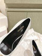 POINTED BB GOLD BUCKLE HIGH PUMPS 85MM IN WHITE PATENT CALFSKIN