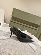 POINTED HIGH MULES IN BLACK MONOGRAM JACQUARD FABRIC