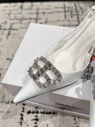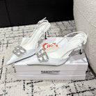 POINTED HIGH SLINGBACK IN WHITE PATENT CALFSKIN WITH CRYSTAL BUCKLE