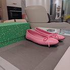 RHINESTONE BALLET FLATS WITH BOW IN SEA PINK WAX-OIL SHEEPSKIN