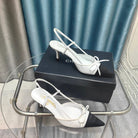 Slingback 50 White Calfskin Black Satin Pointed Toe