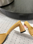 SQUARE-TOE MEDIUM HEEL MULES IN APACHE CALFSKIN LOGO EMBOSSED
