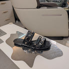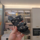 STRAPPY FLAT SANDALS IN BLACK STUDDED WAX-OIL SHEEPSKIN