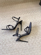 STRAPPY HIGH HEEL SANDALS IN BLACK SILK