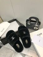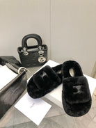 THICK-SOLED SLIPPER IN BLACK LAMB FUR