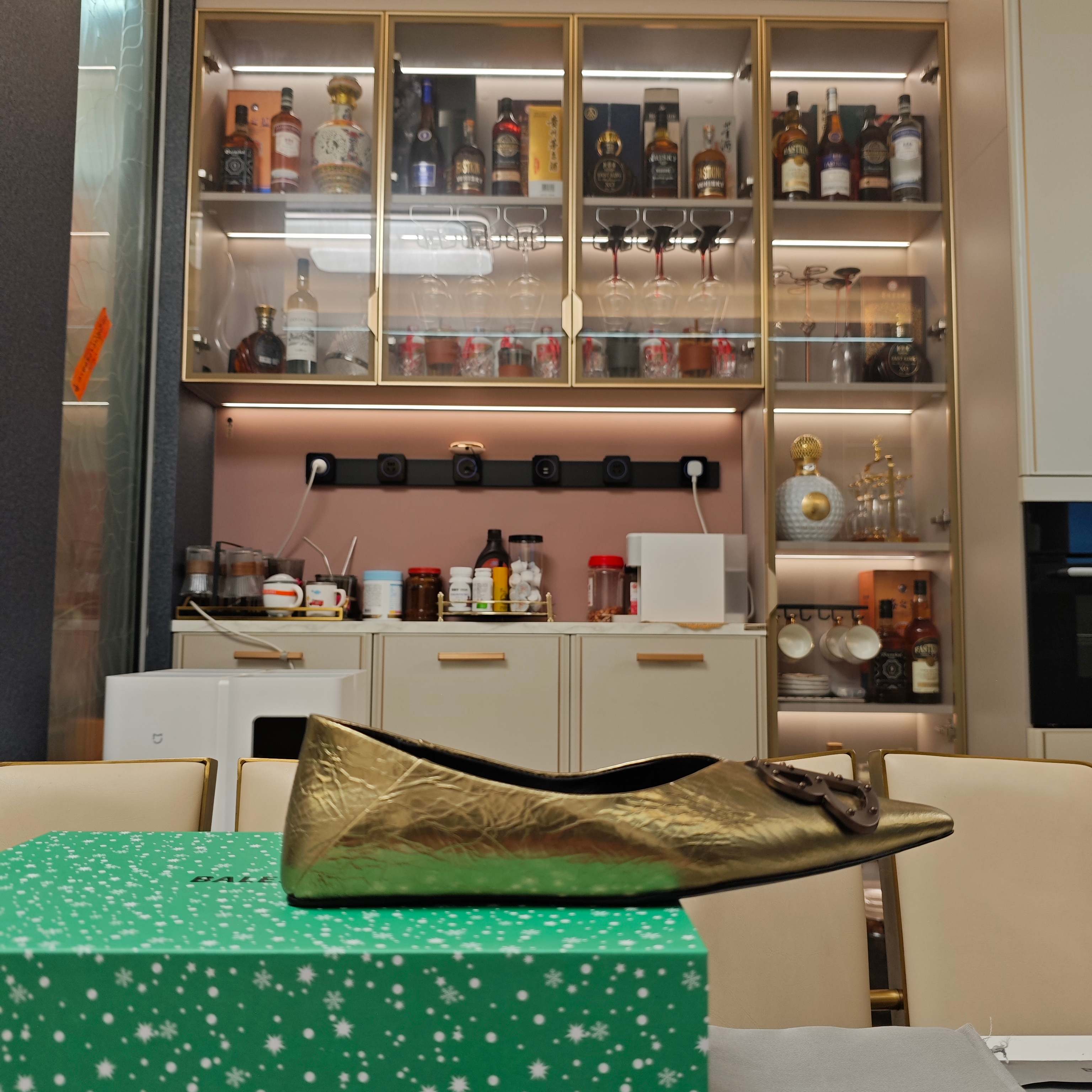 POINTED BB GOLD BUCKLE BALLET FLAT IN GOLD METALLIC SHINY CALFSKIN