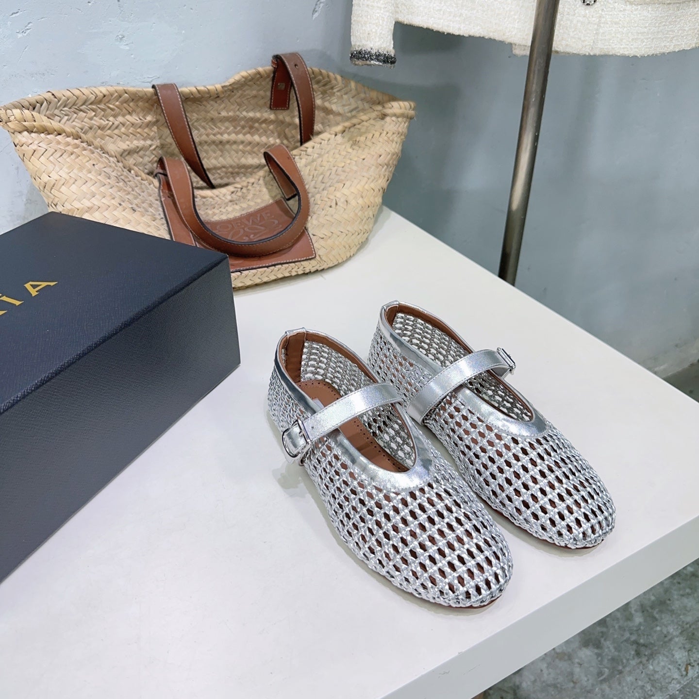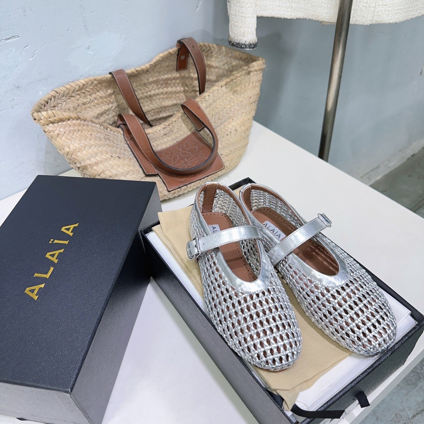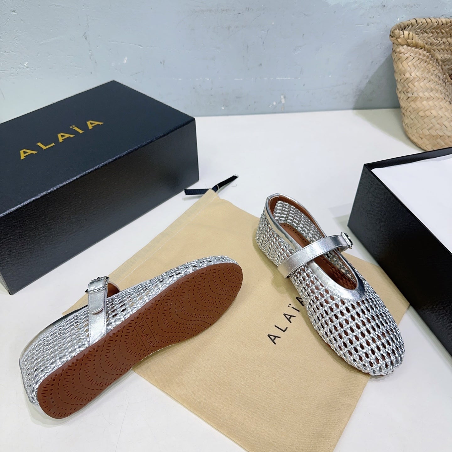 Alaia Braided Hollow Ballet Flats Silver Cowhide 300042