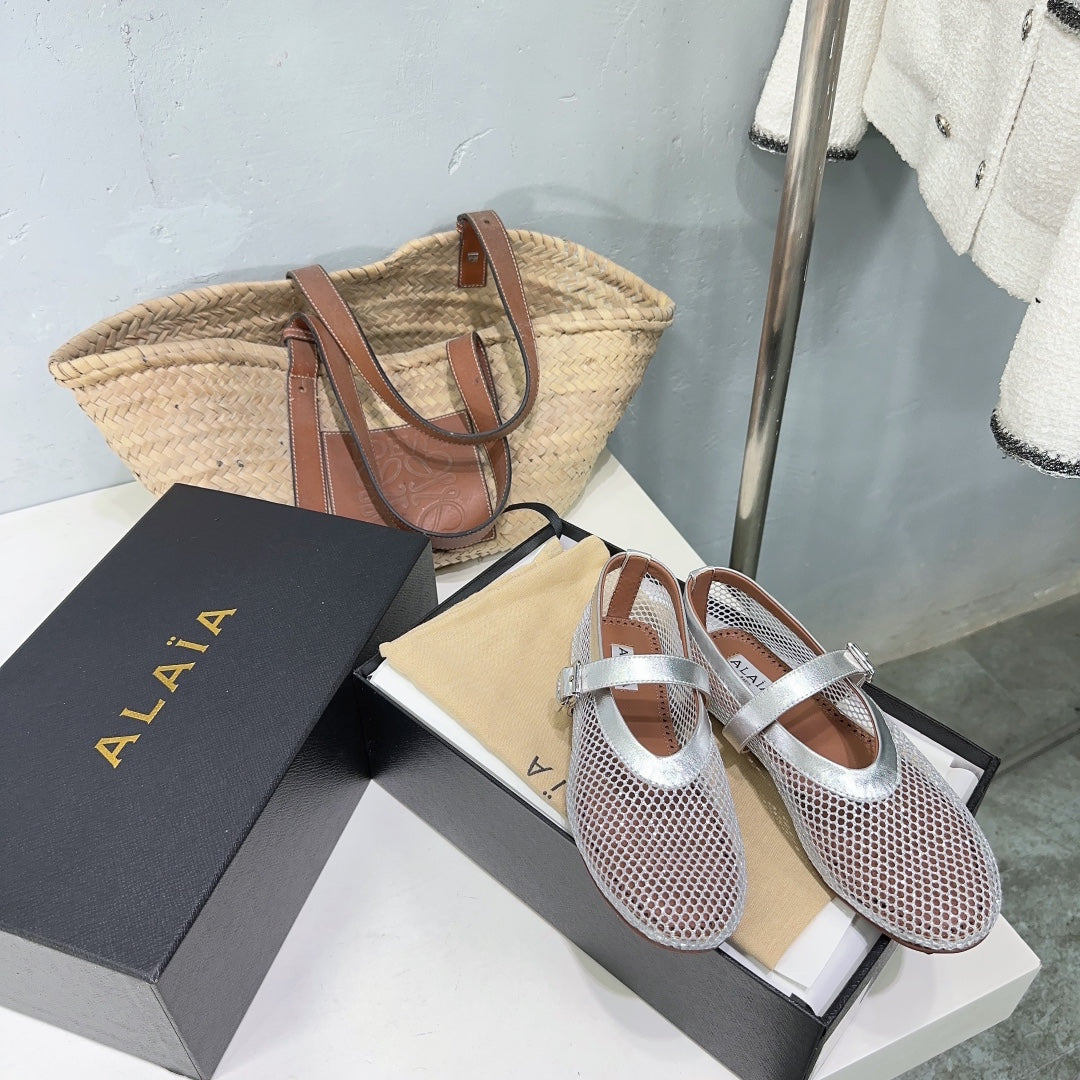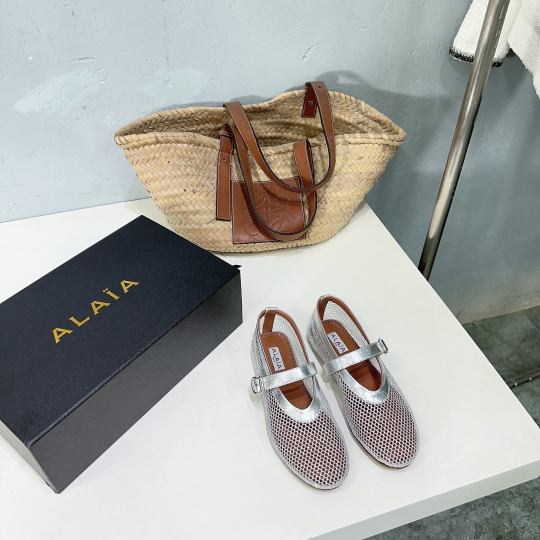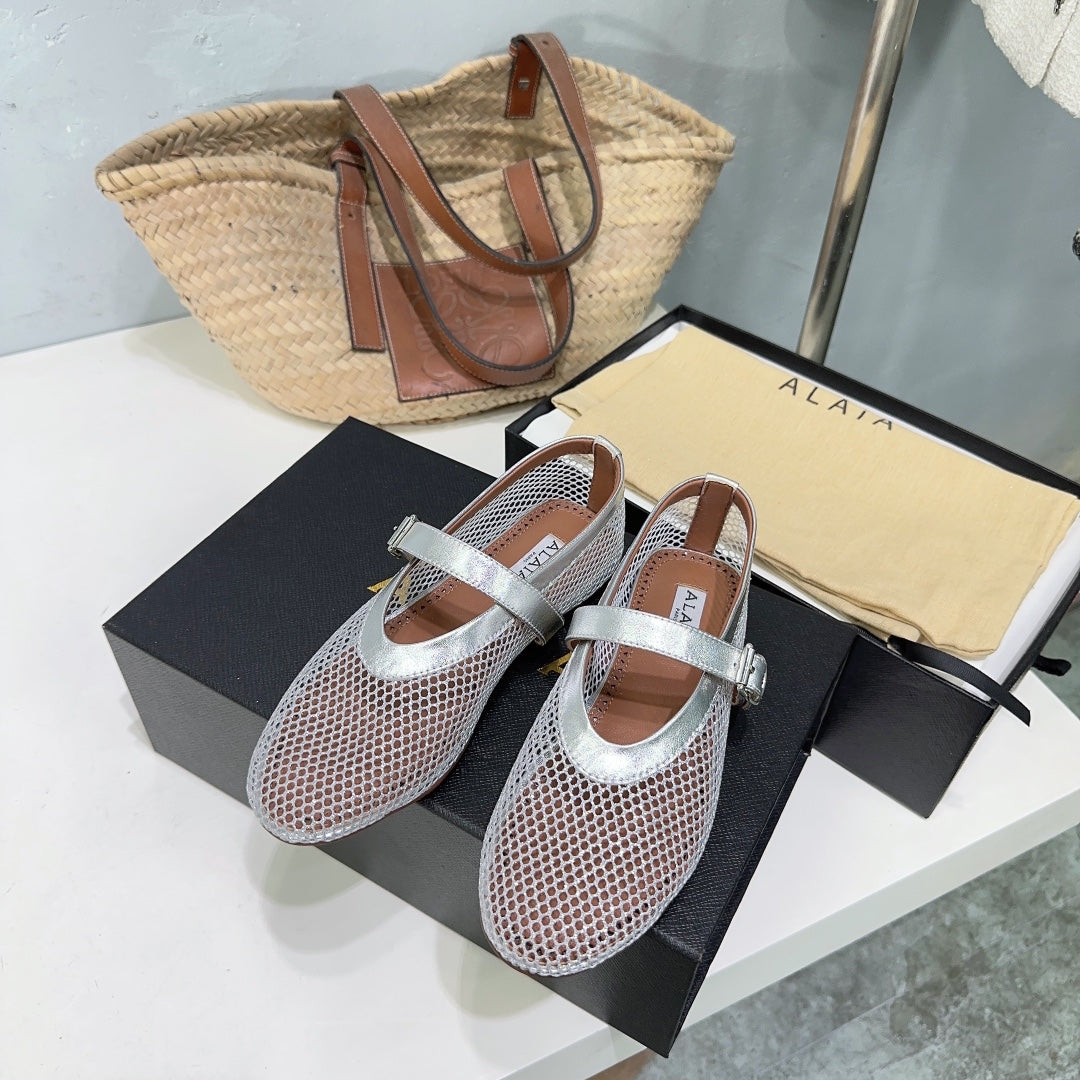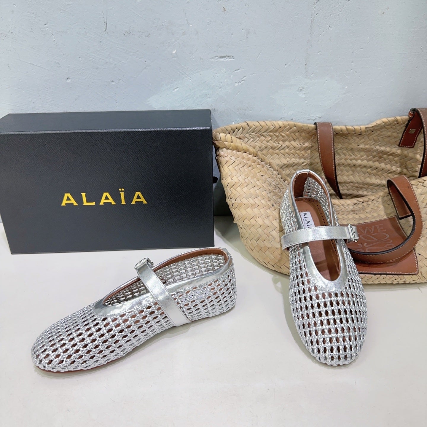 Alaia Braided Hollow Ballet Flats Silver Cowhide 300042