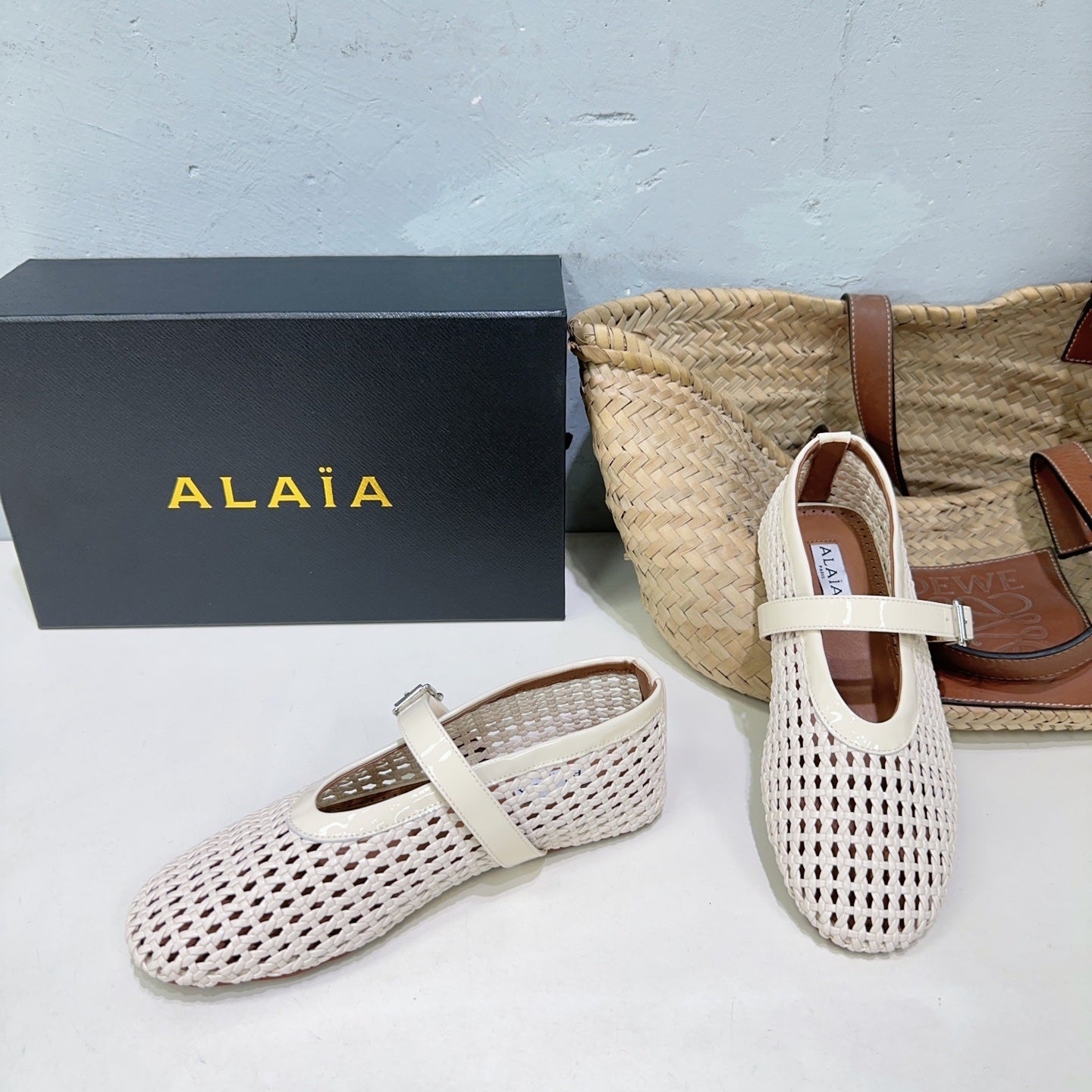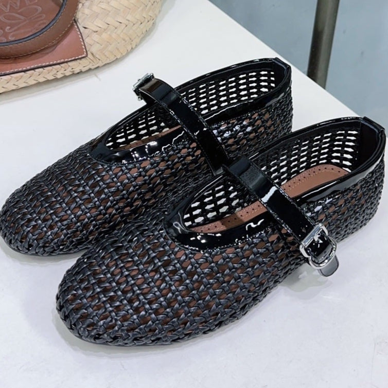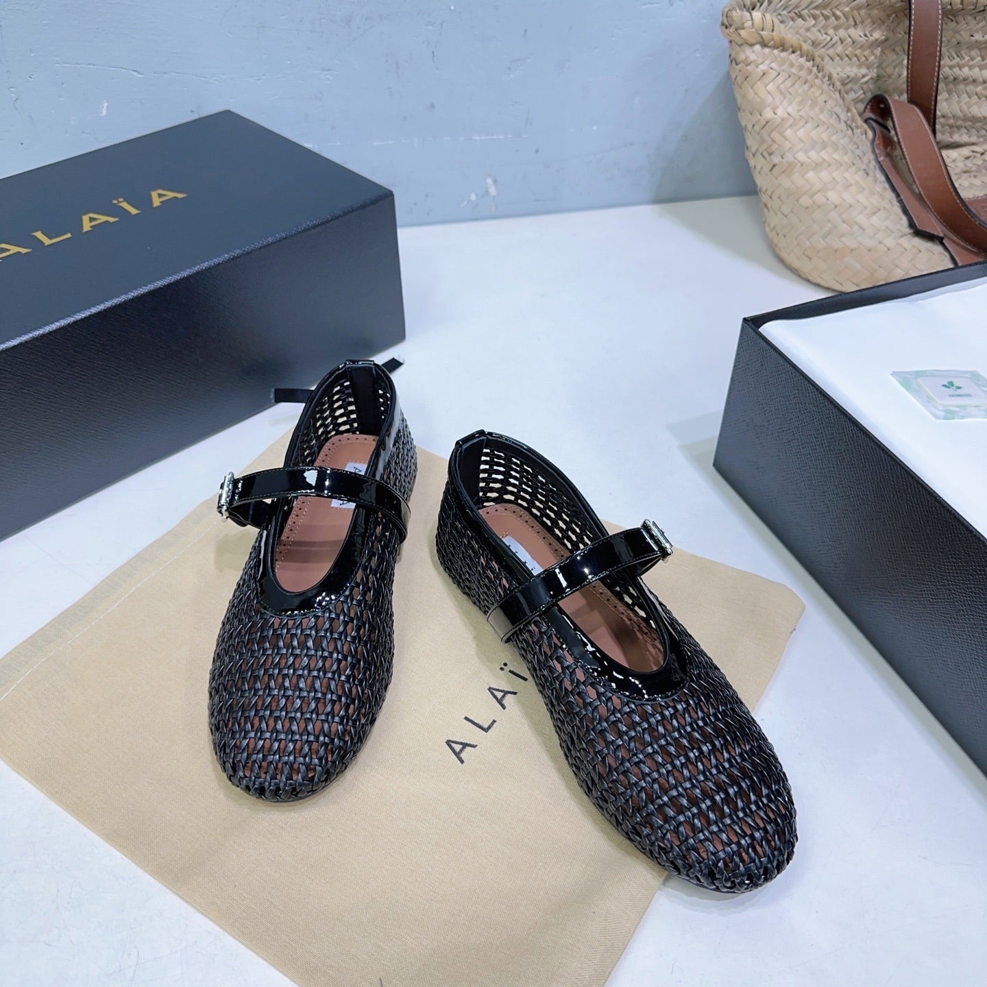 Alaia Braided Hollow Ballet Flats Black Cowhide 300041