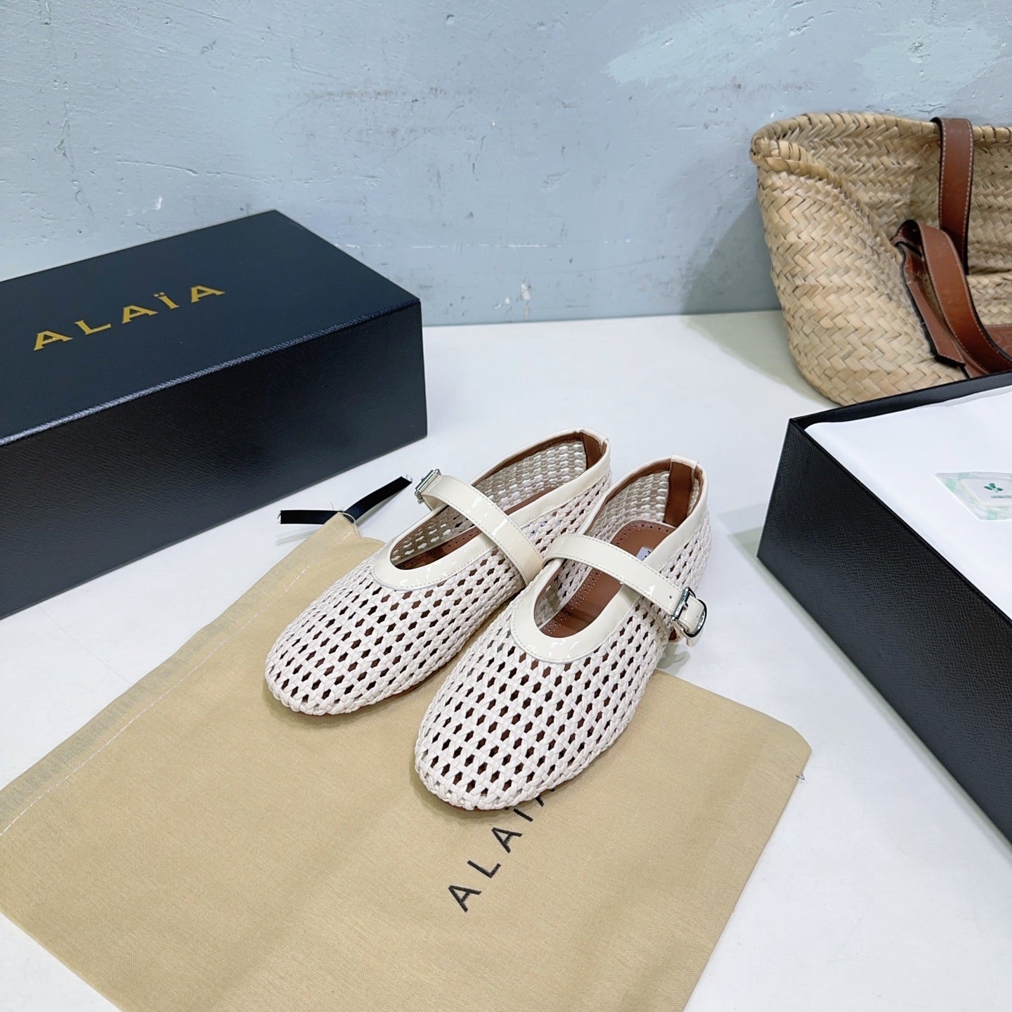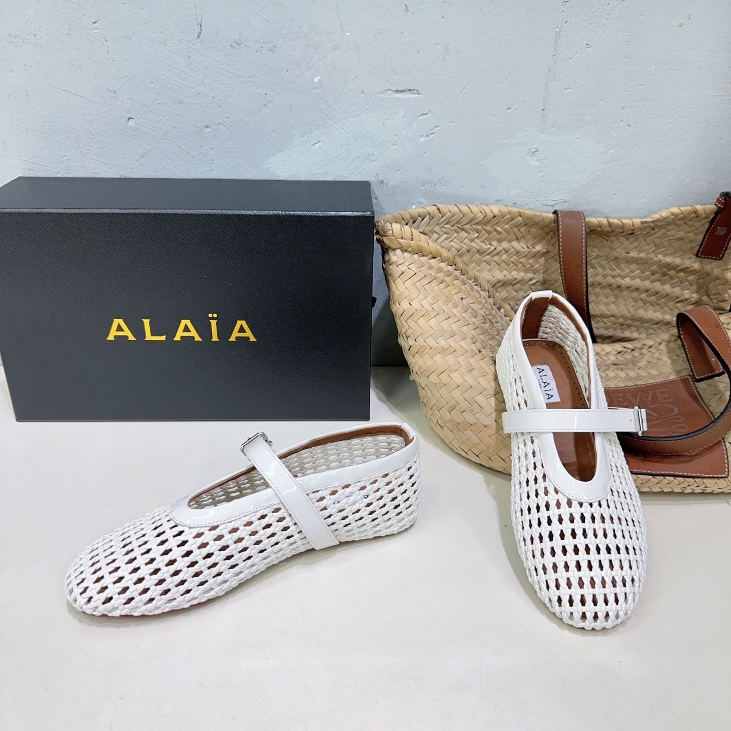 Alaia Braided Hollow Ballet Flats White Cowhide 300044