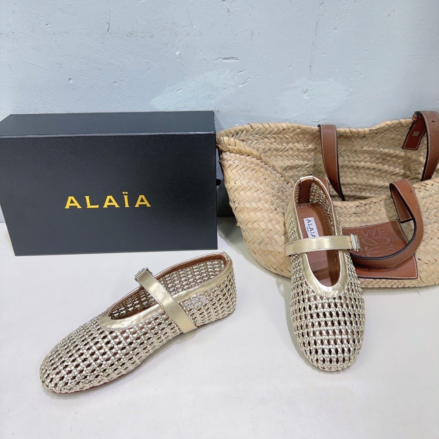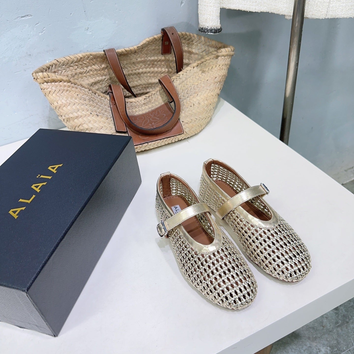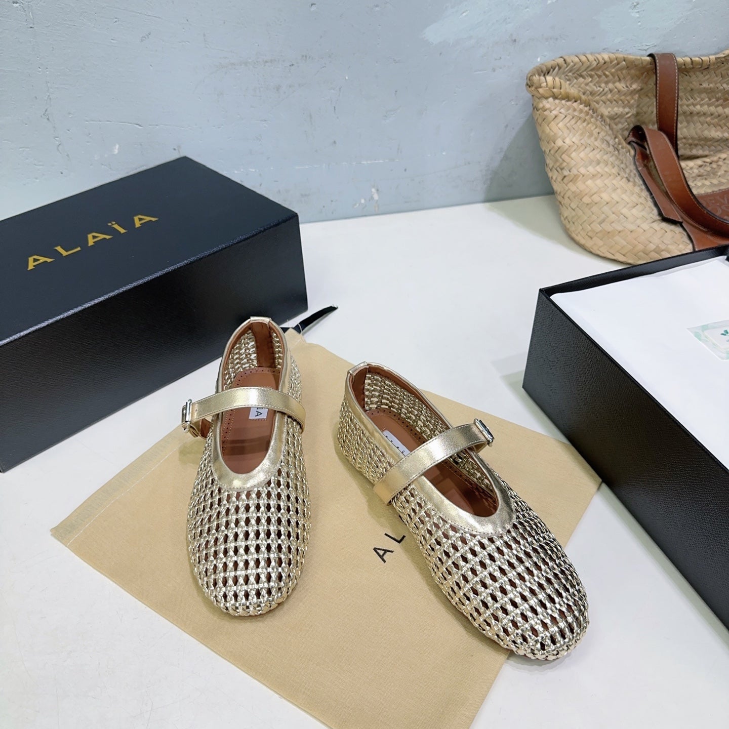Alaia 25 Laminated Fishnet Ballet Flats Gold Lambskin 576441