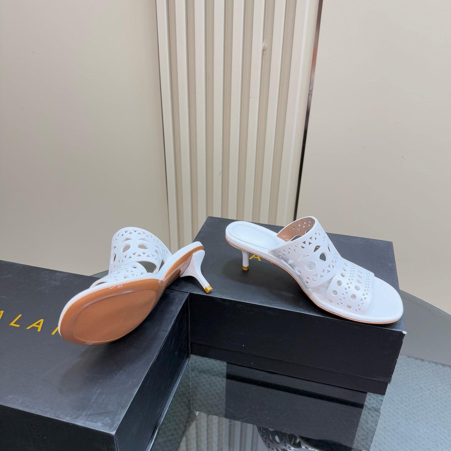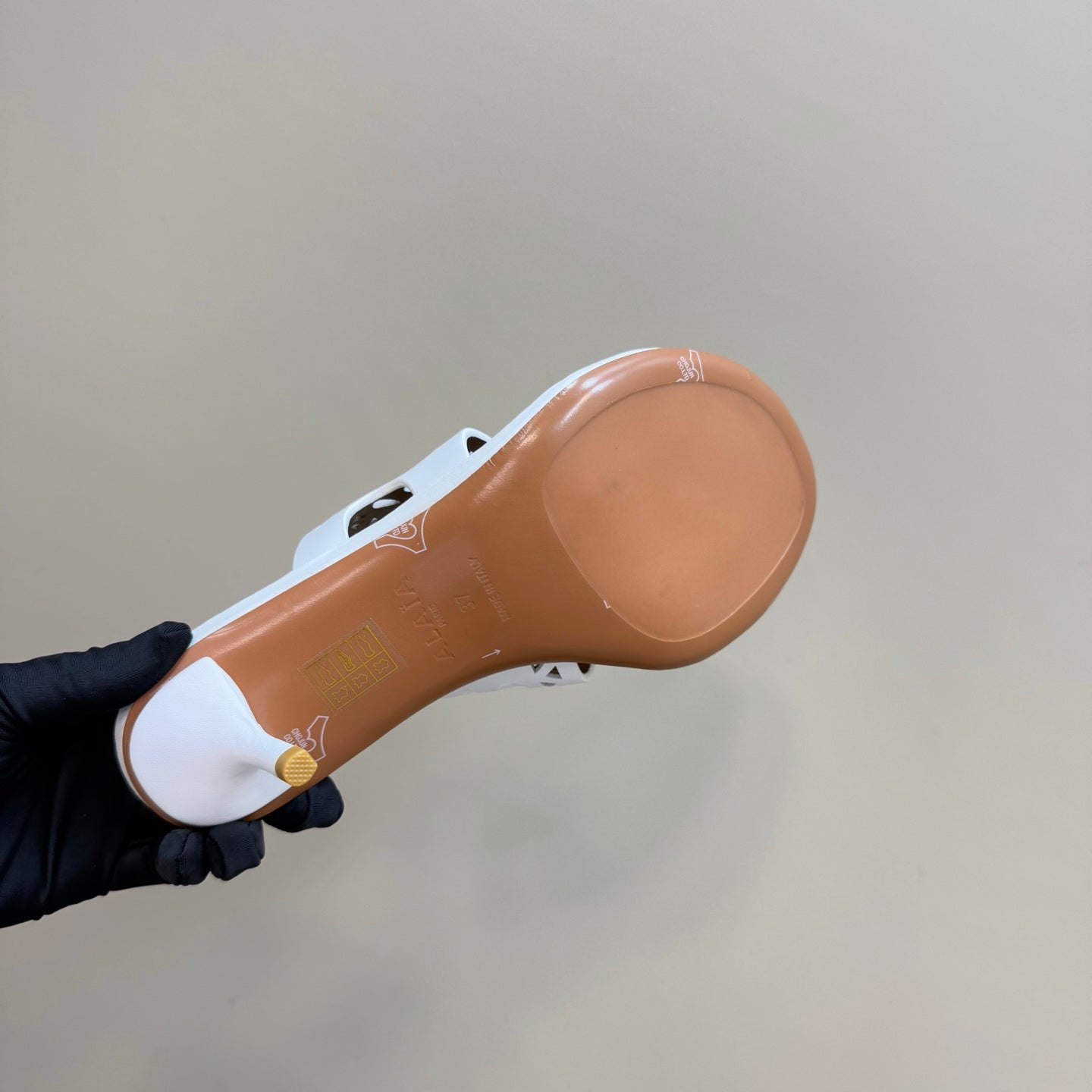 Alaia 25 Fishnet Flat Mules White Lampskin 303681