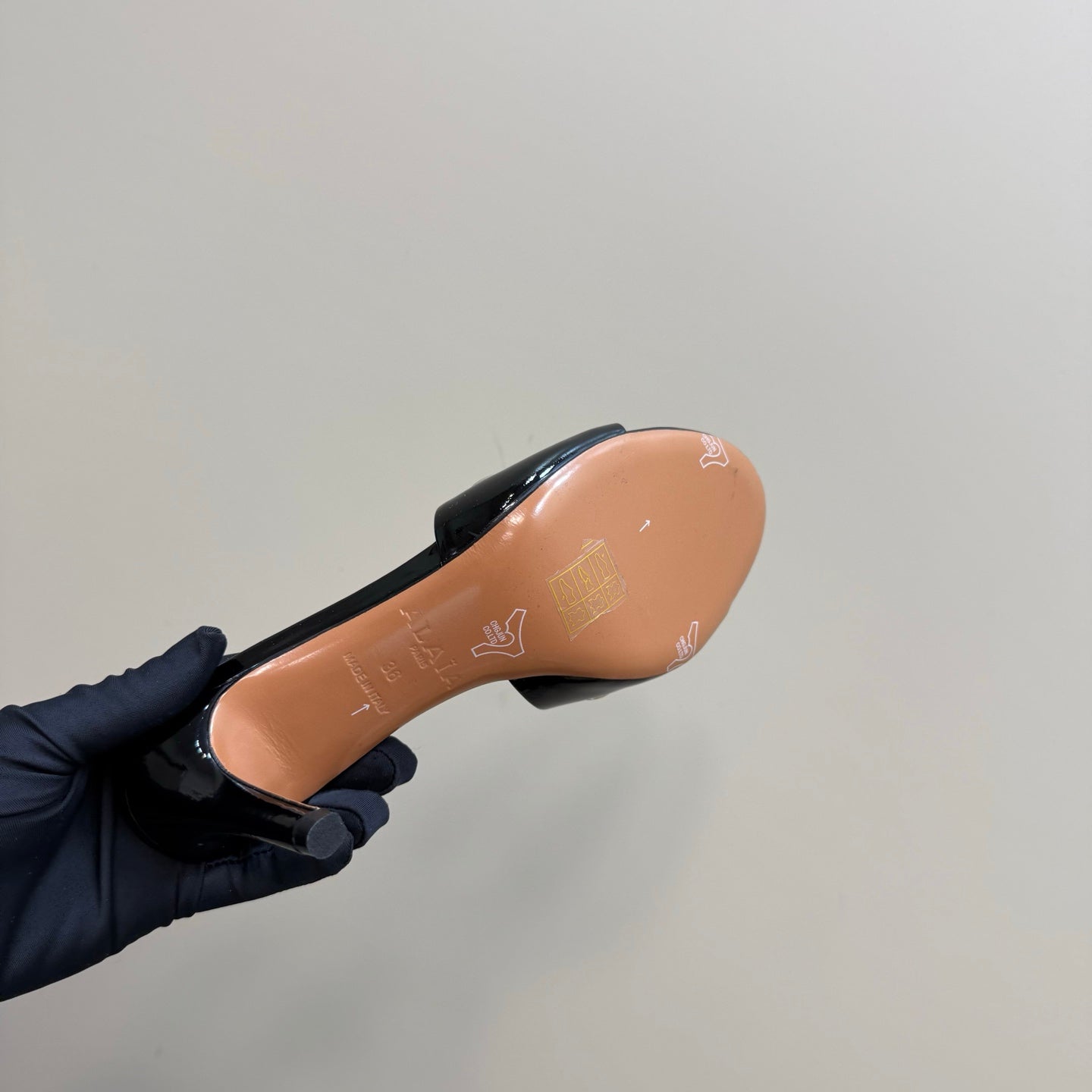 Alaia 25 Cube Wedge Mules Black Silk Sheepskin 300084