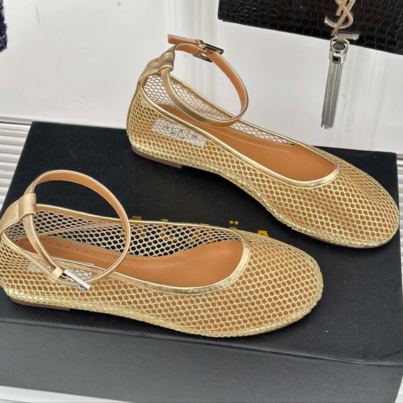 Alaia 25 Mary Jane Mesh Ballet Flats Gold Calfskin 293249