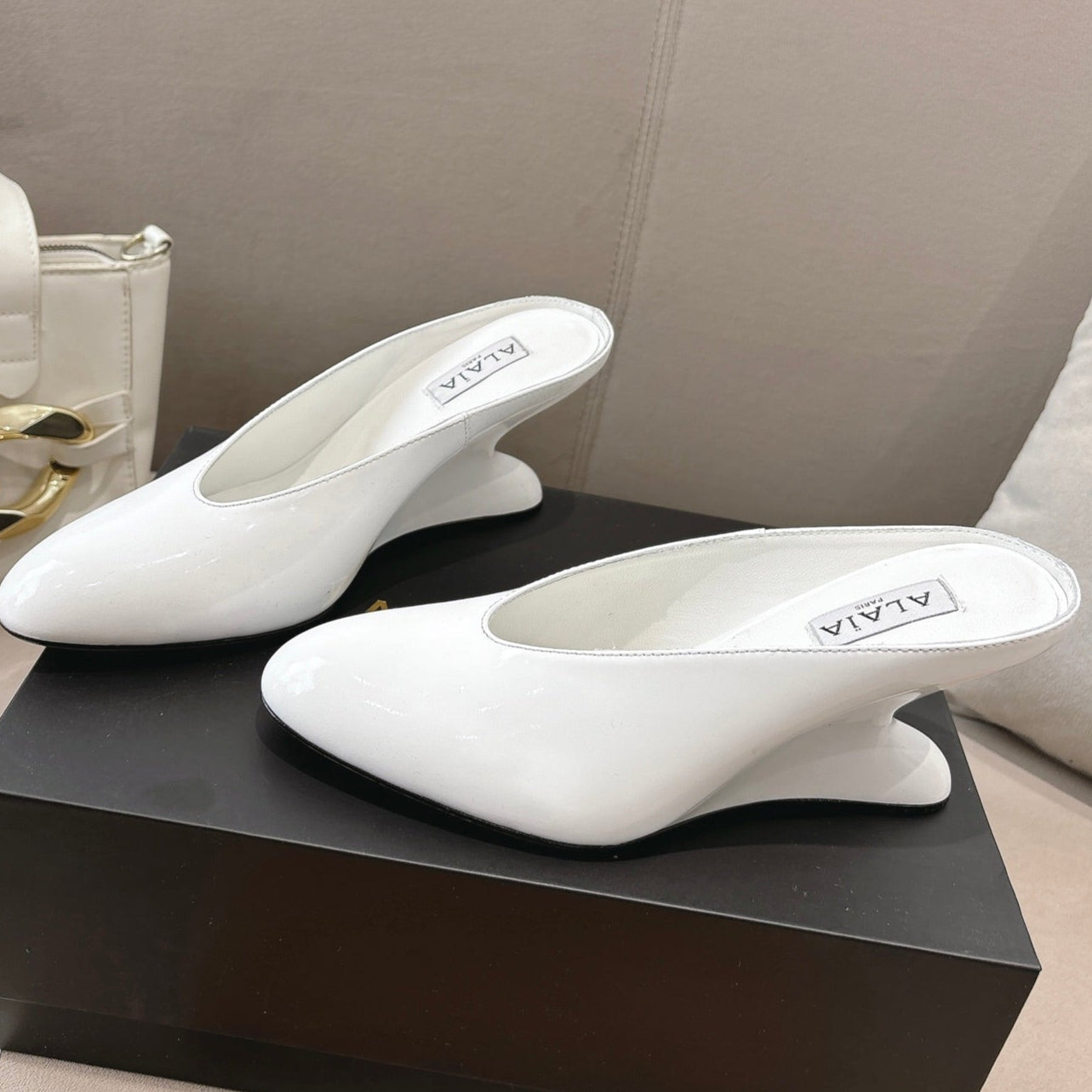 Alaia 25 Curve Wedge Mules White Lambskin 293554