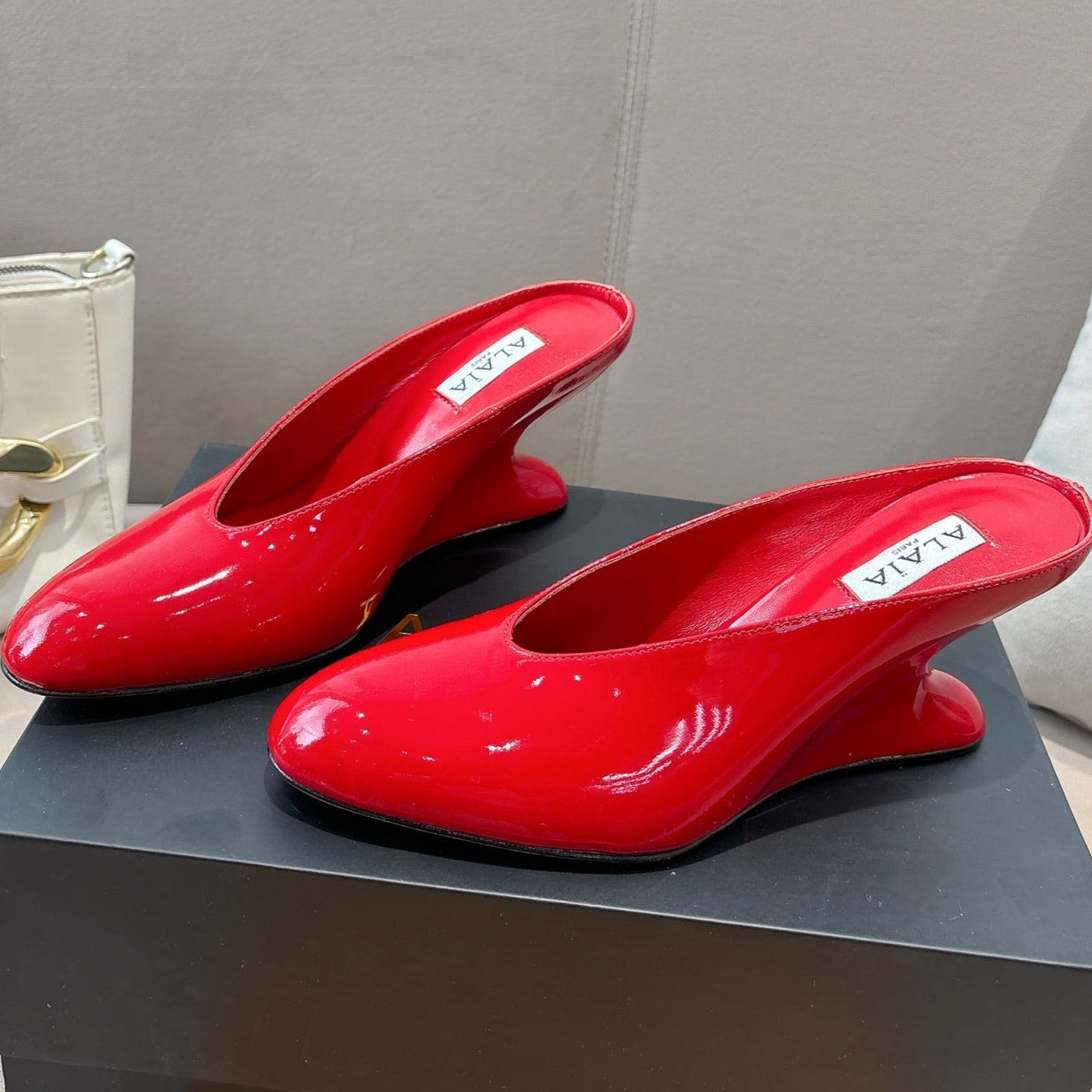 Alaia 25 Curve Wedge Mules Red Lambskin 293556