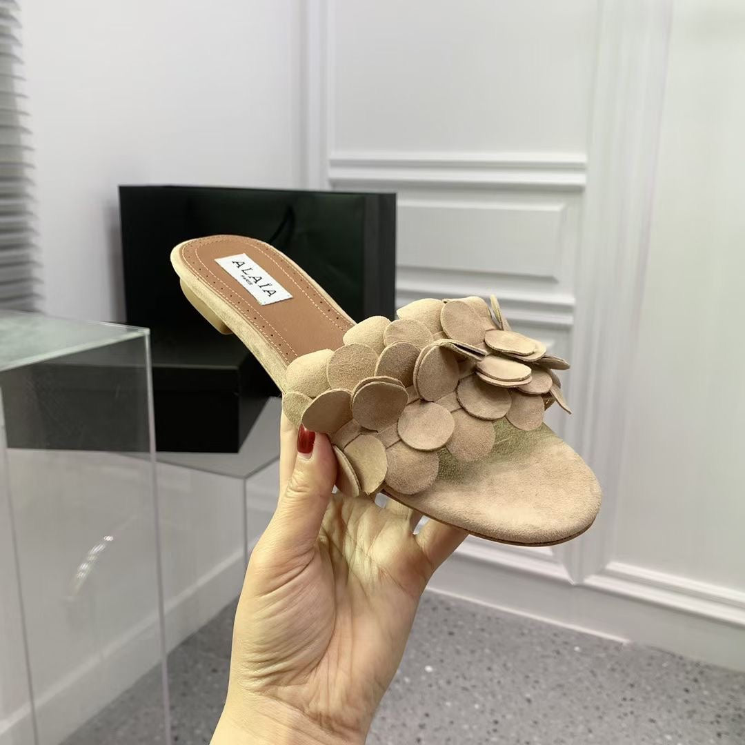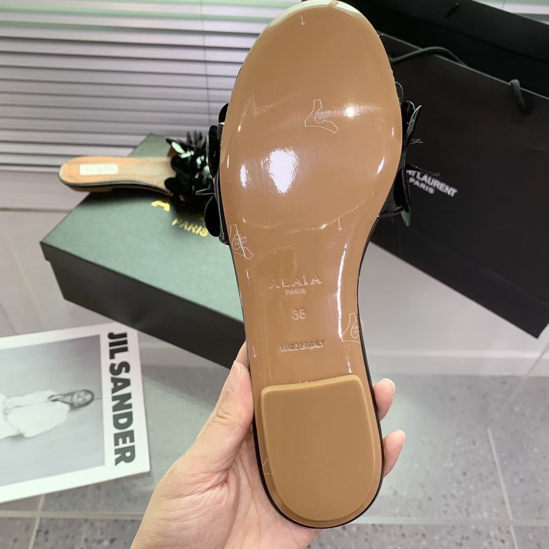 Alaia 25 Flower Slippers Black Sheepskin 293157