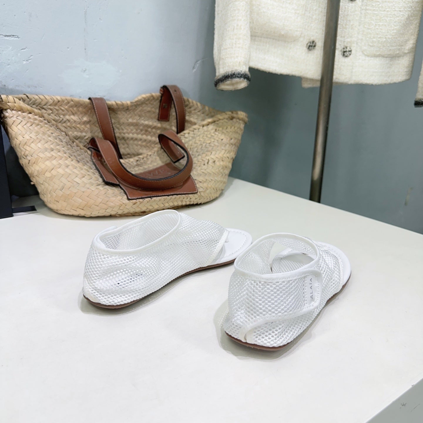 Alaia 25 Thong Sandals White Fishnet Sheepskin 315964